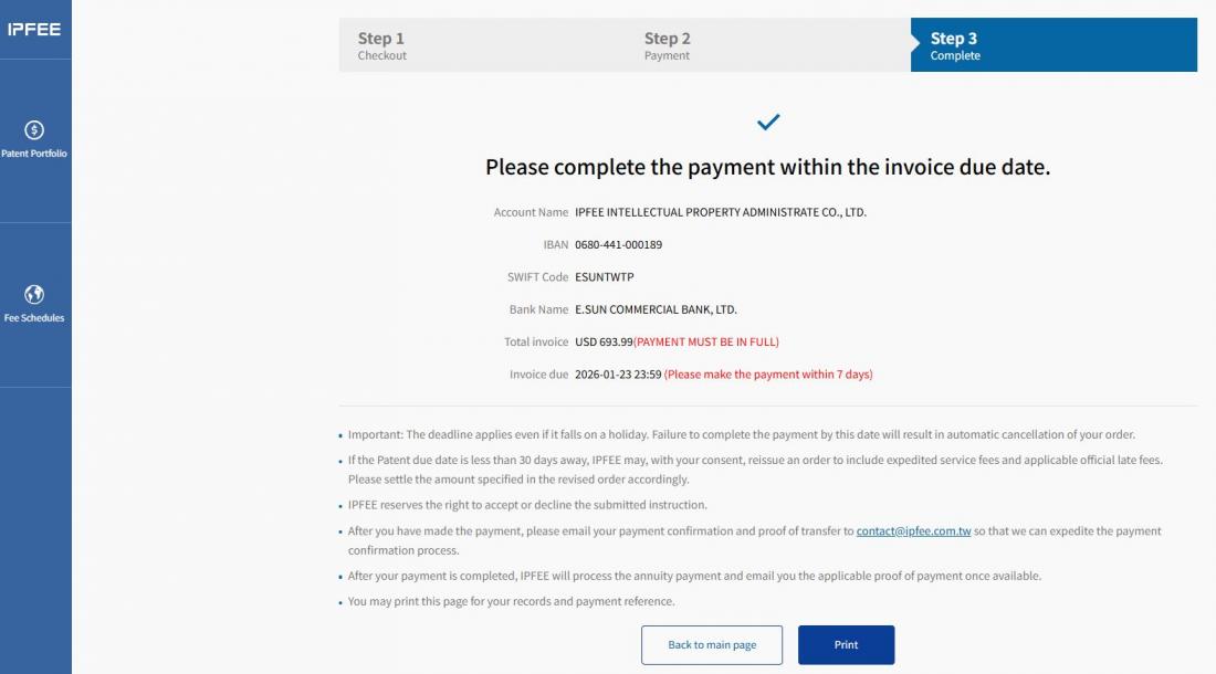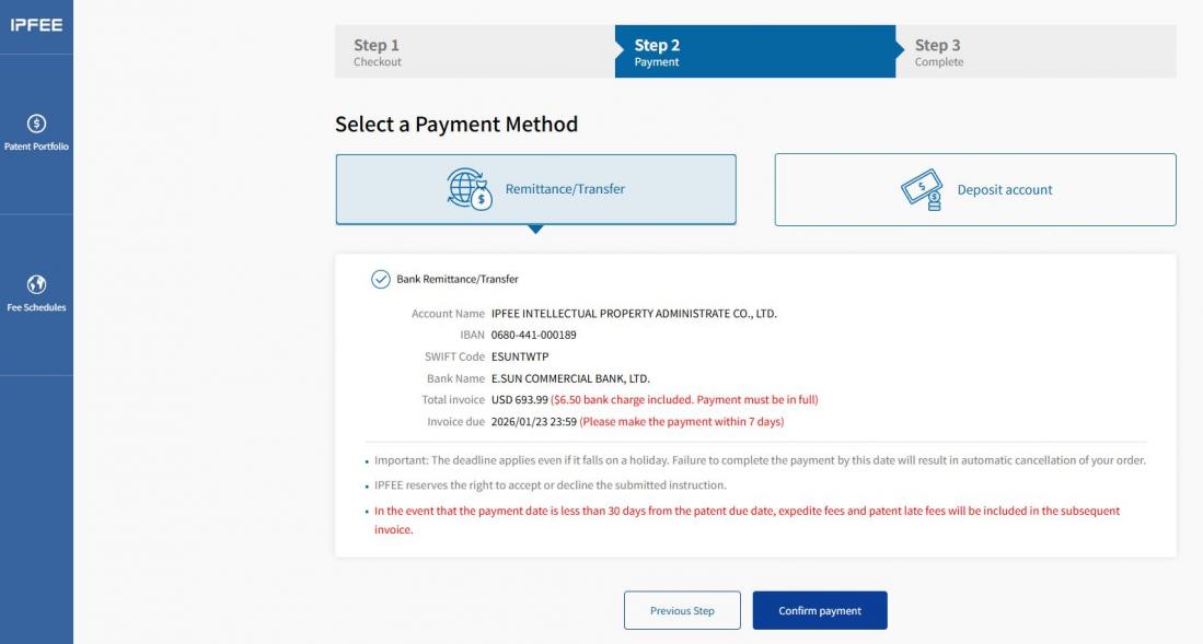 → If you select Bank Remittance/Transfer, IPFEE will automatically issue an Invoice to your registered email address.