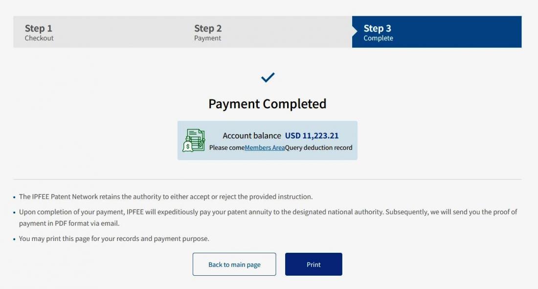 IPFEE will automatically issue a Receipt to your registered email address.