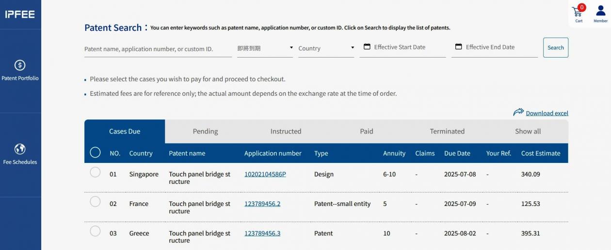 ★ This function allows you to quickly search for Patent cases in IPFEE.